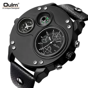 Genoa Multifunctional Quartz Movement Watch with Black Leather Strap (47mm) (5.25-7.25